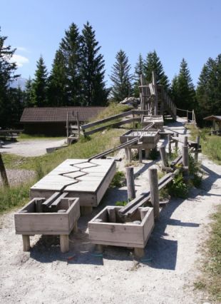 Klettern und mit Wasser spielen: Auf dem regionalem Abenteuerspielplatz in Krün können Ihre Kinder sich richtig austoben. Der naturnahe Spielplatz bietet nicht nur den Kleinen jede Menge Spaß, sondern ermöglicht auch den Eltern und Großeltern, den Aufenthalt in entspannter Atmosphäre zu genießen.