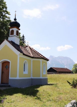 Die Kapelle Maria Rast thront malerisch auf den Buckelwiesen nahe Krün. In der zauberhaften Kulisse der Alpen lädt dieses kleine Gotteshaus dazu ein, ein Dankgebet zu sprechen oder einfach nur einen Moment der Ruhe zu genießen.