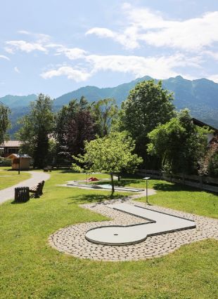 Bei der 18-Loch-Minigolf-Anlage, die in den schönen Kurpark am Kurhaus Krün integriert wurde, kommt es auf Fingerspitzengefühl an. Die Anlage hat fugenfreie Bahnen und ist somit sogar barrierefreie! Spiel und Spannung sind hier garantiert. Schwingen Sie Ihre Schläger mit Aussicht auf den Karwendel.